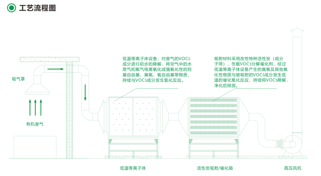 低溫等離子體設備是利用高壓放電技術,電離空氣和廢氣成分來實現有機污染物分解凈化的設備。普遍應用于各類有機廢氣、含塵有機廢、除臭等領域。適用于大風量、低濃度的有機廢氣治理,對進氣要求較低,抗顆粒物、液滴、霧滴干擾能力強,但不適用與高濃度有機廢氣和可能發生爆燃的有機廢氣。